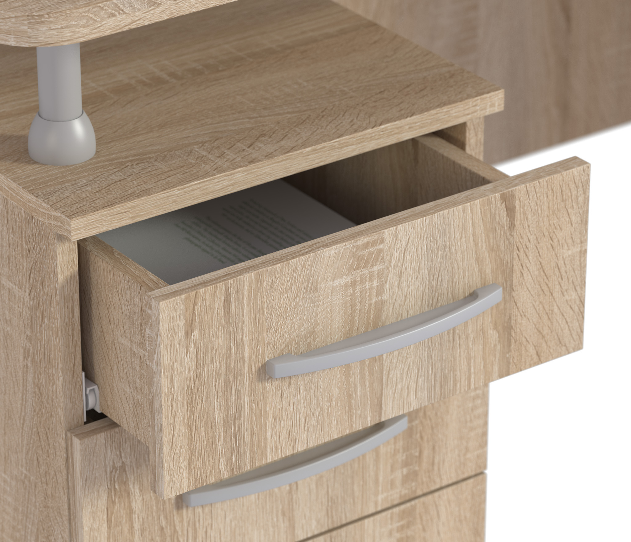 Компьютерный стол очень понравился, искала стол с правосторонней тумбой, но оказалось, что с левосторонней тумбой даже удобней. Покупкой, довольна!
