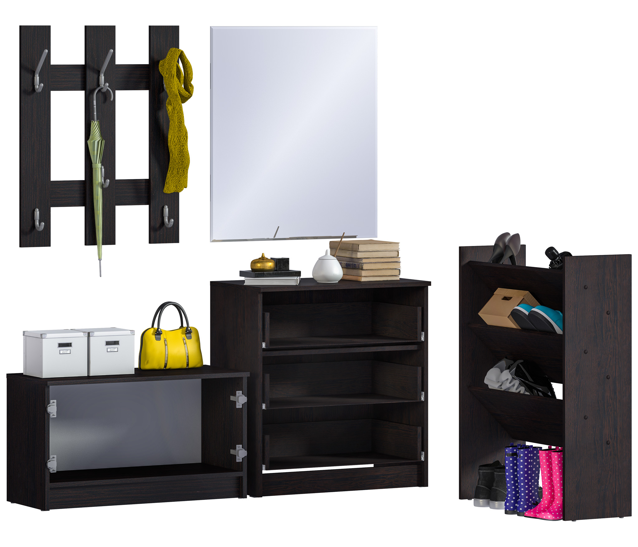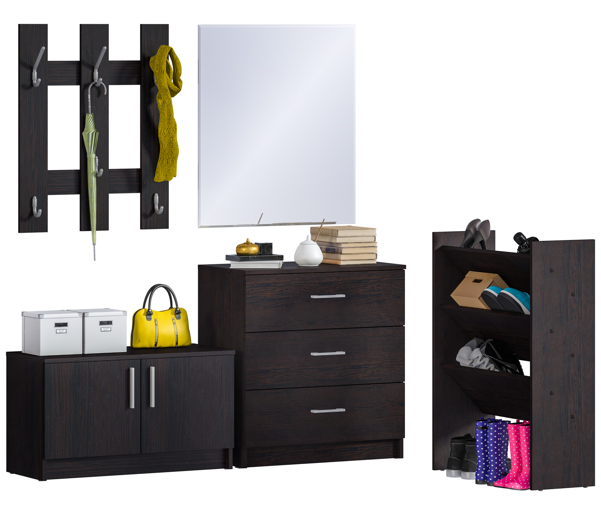 Элементы бюджетной прихожей Терра (Лофт) не займут много места в Вашей прихожей, можно расставить модули в соответствии с индивидуальной планировкой. Мебель темного древесного оттенка подойдет для прихожей в светлых тонах, в современном и стиле лофт. В комплект входит: комод с 3 ящиками (700х750х400мм)-1 шт , прихожая СБ-2555 (788х435х353мм)-1шт, обувница СБ-2130 (712х900х270мм)-1шт