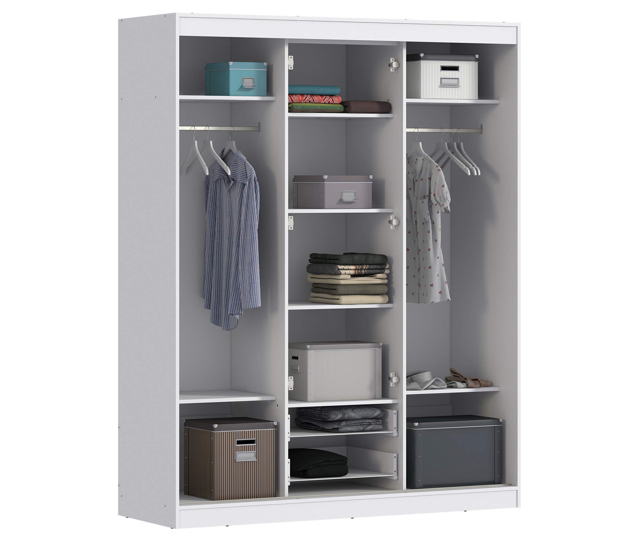 Шкаф -купе Бася - это функциональная, стильная и вместительная модель для спальни или прихожей. В шкафу три больших отделения для одежды. В центральном отделении полки для белья, 2 выдвижных ящика, двери распашные. В правом и и левом- штанга и полка антресоль, двери раздвижные с зеркалом.