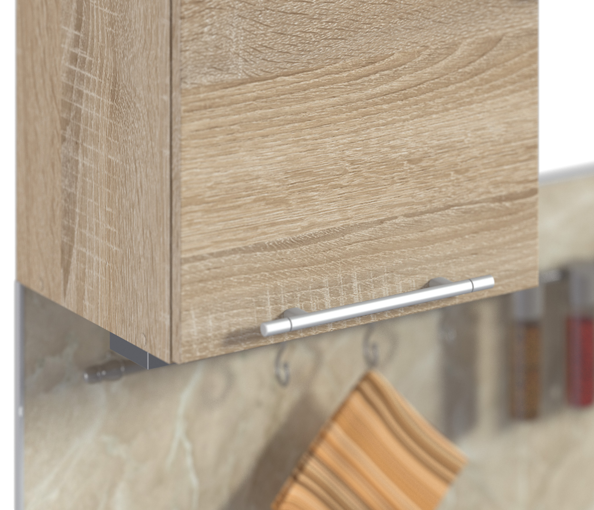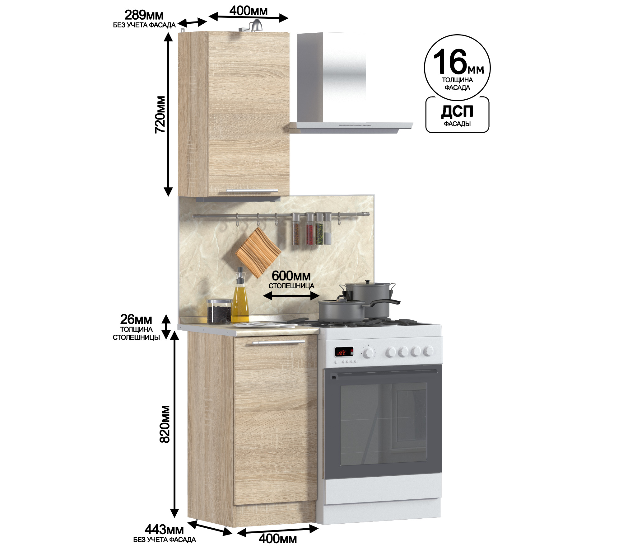Кухонный гарнитур "Ангелина-40 Классик" - новая интерпретация излюбленной коллекции. Создана для небольших помещений с учетом основных потребностей к кухонной мебели. Включает в себя верхний шкаф и стол с поперечными полками. Теплый оттенок "Дуб Сонома" с имитацией естественной фактуры дерева позволяет легко сочетать кухню с дополнительными элементами кухонной мебели. В линейке размеров "Ангелина Классик" представлены различные варианты готовых кухонных гарнитуров, ознакомиться с которыми можно на нашем сайте.