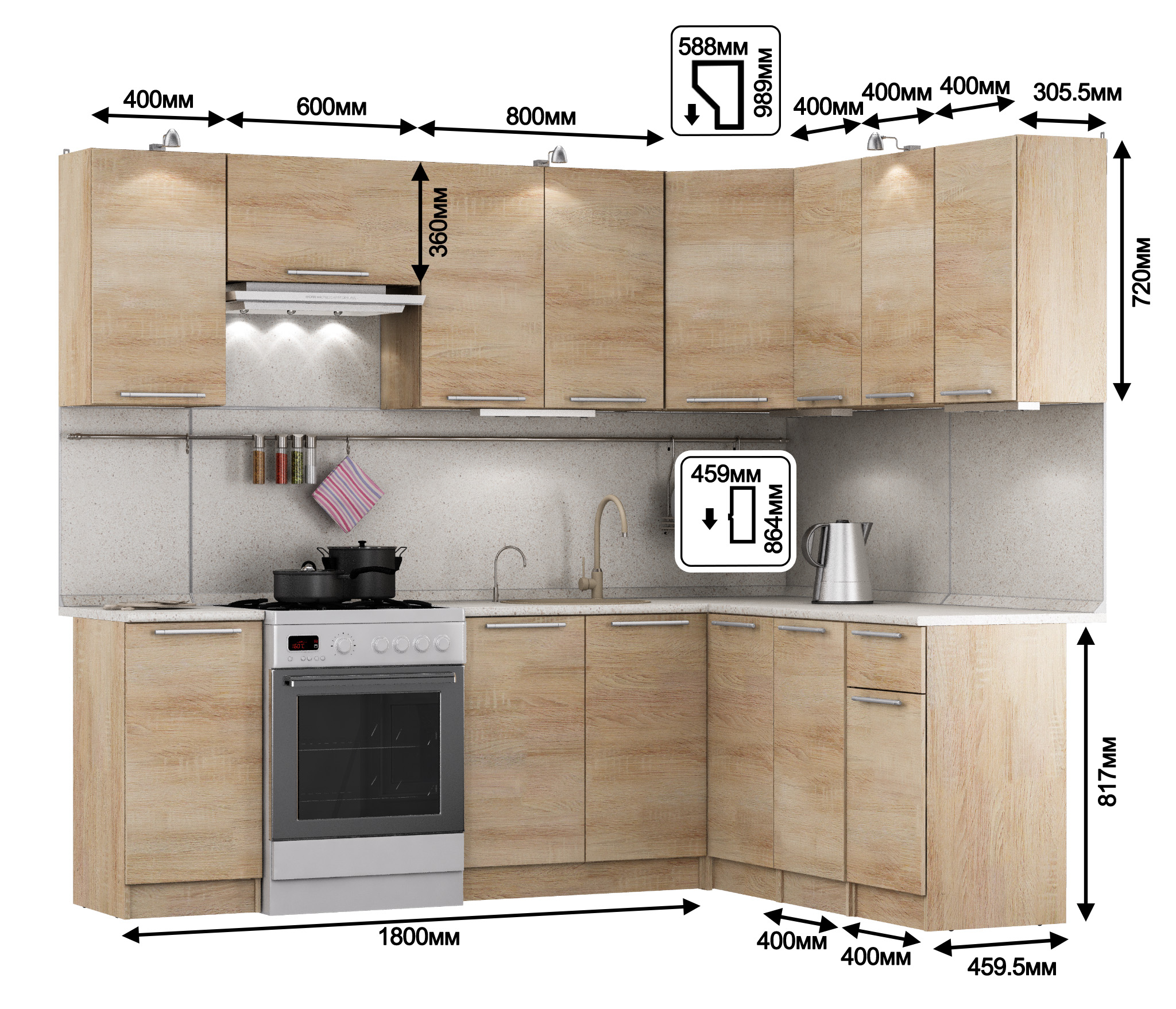 Ангелина угловая Классик Кухонный гарнитур Дуб Сонома х1