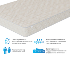 В качестве внутреннего слоя матраса используется Струттофайбер Лён - это современный материал, превосходный по своим ортопедическим свойствам. Он упруг и мягок, обладает теплозащитным и звукопоглащающим эффектом. На матрасе достигается максимальное расслабление, а значит и наиболее эффективный отдых. Система усиления периметра матраса обеспечивает упругость, достаточную для сохранения первоначальной формы матраса.