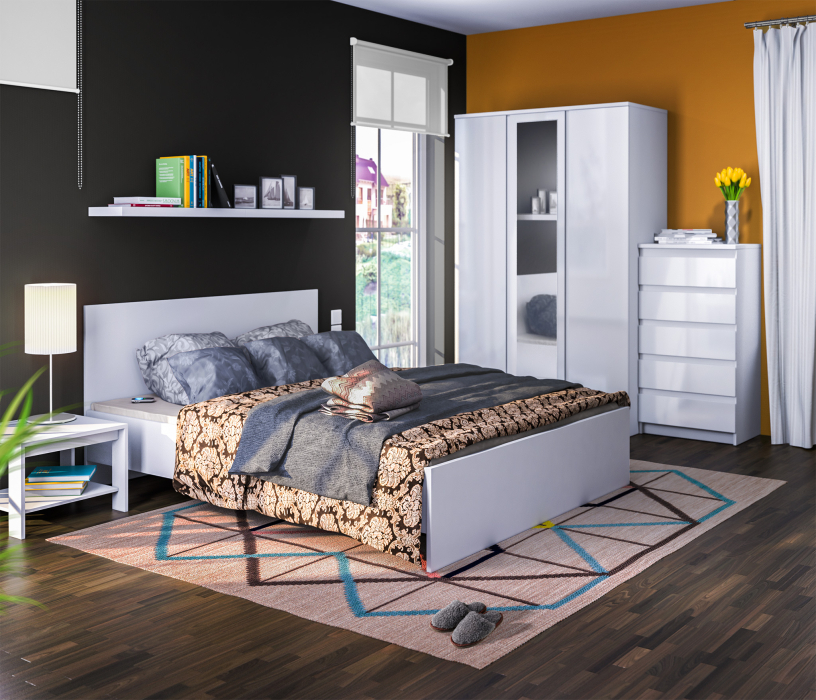 Выбрали данный комплект мебели для дочери подростка. Шкаф трехстворчатый, комод, прикроватную тумбу и стол из серии Медея. Шкаф - НЕ ГЛЯНЕЦ!!!!Описание неверное, увидела уже когда собрал сборщик... Так бы вернула! Комод и тумбочка - фасады что-то похожее на глянец. Обычная дешевая мебель, что и следовало ожидать из низкой цены. Ящики в комоде выдвигаются очень шумно. Кромка сделана не особо аккуратно. Так себе мебель...Цена = качество. Не понимаю восторженных отзывов.