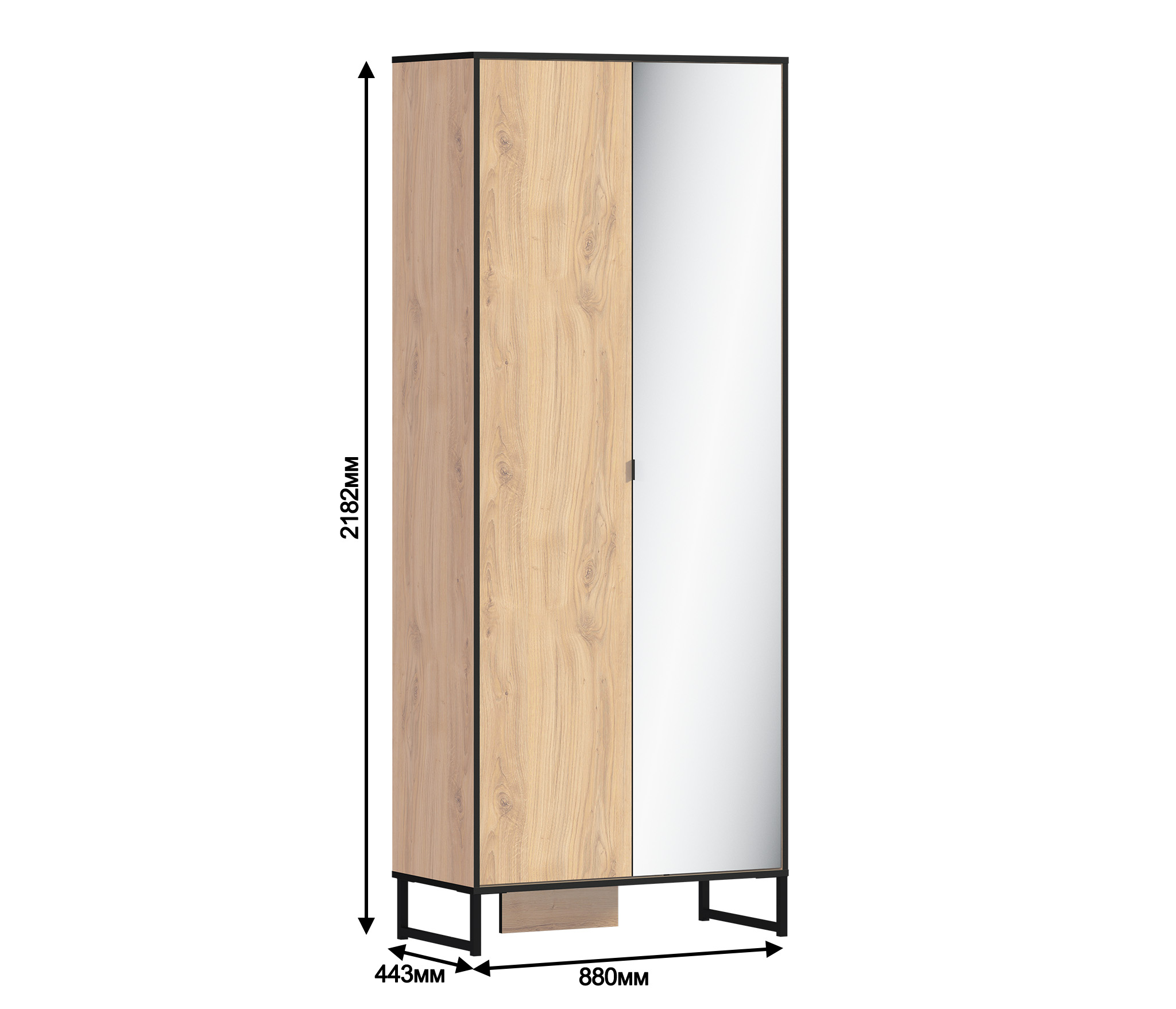 Лофт СБ-3111 Шкаф 2х дверный с зеркалом Дуб Минерва