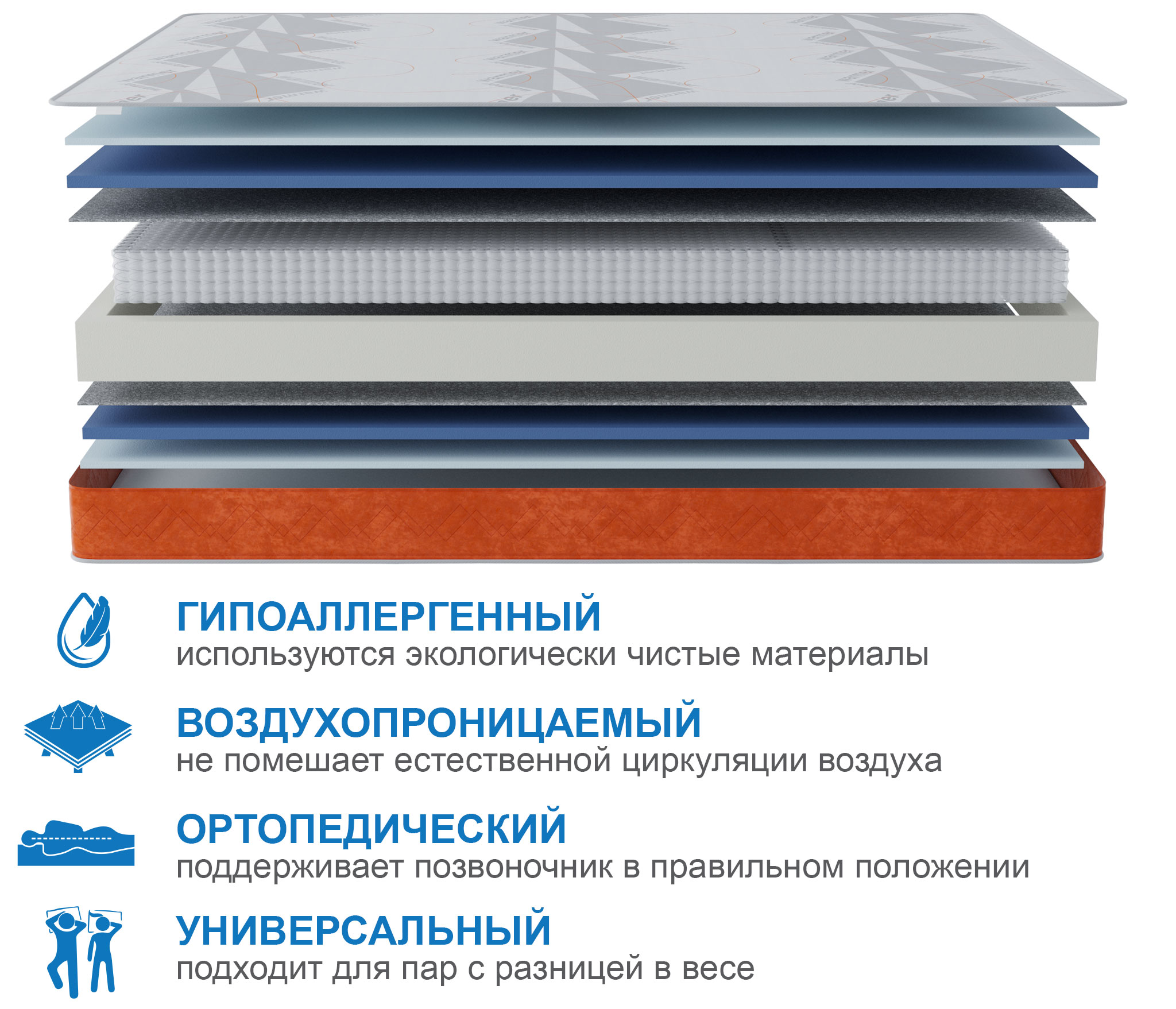Матрас Сити-Мадрид в чехле Warmer 1400х2000 (Белый/Оранжевый)