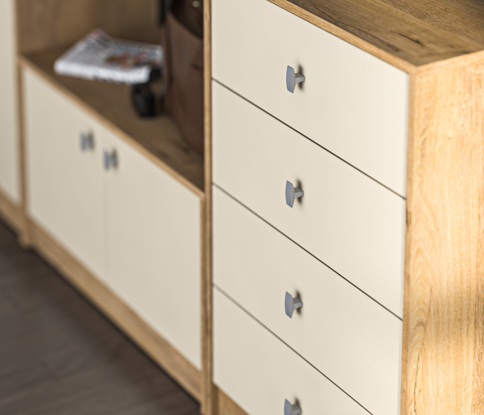 Комод Сидней вместительный, и не занимает много места. Модель выполнена в классическом, современном дизайне. Выполнен из качественного экологически чистого материала. Четыре выдвижных ящика оборудованы ручками. Комод стильно смотрится, как самостоятельное изделие и гармонично дополняет модули мебельной системы «Сидней».