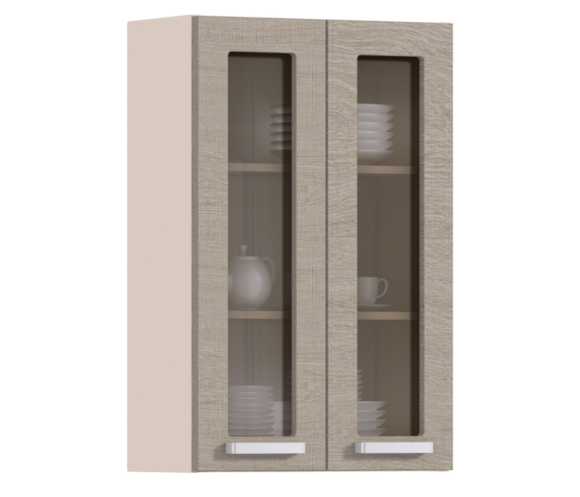 Полка с 2-мя витринами Регина 926 Песочный Дуб Сантана Светлый 600 Код 00000131383