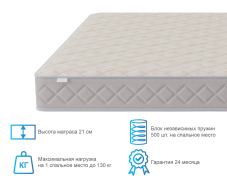 Матрас с ортопедическим эффектом из нашего каталога подходит для двуспальной кровати со спальным местом с широким размерным рядом. Для продления срока эксплуатации и сохранения первоначальных качеств рекомендуем использовать изделие совместно с защитным чехлом.