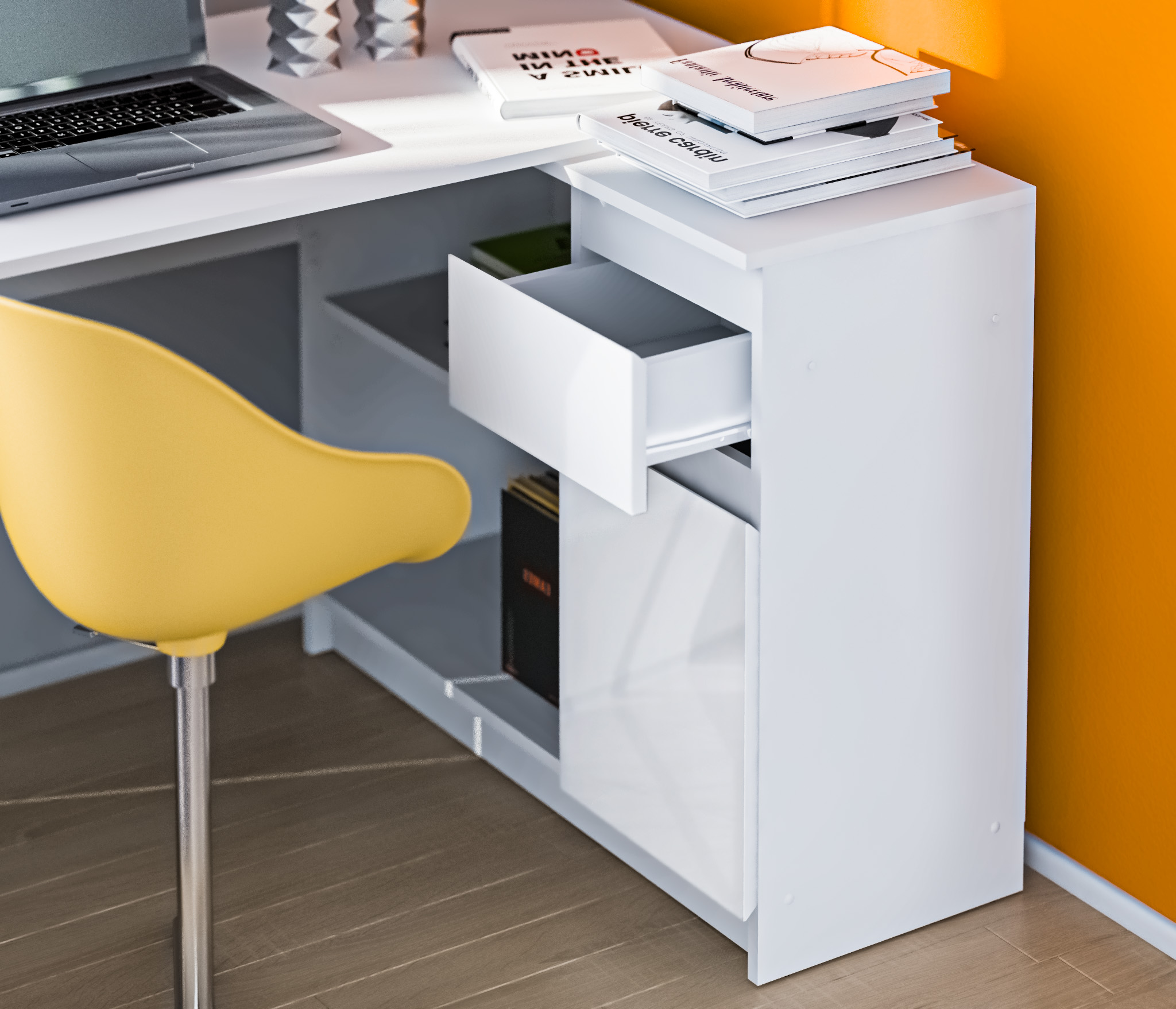 Стол письменный с ящиками Медея СБ-3239 имеет строгий и лаконичный дизайн, прекрасно расположится в вашем интерьере. Письменный стол сэкономит место в комнате, благодаря угловой конструкции, а фасады стола белого цвета, выполненные из ЛДСП, остаются актуальными и по сей день. Кроме того, их легко держать в чистоте, периодически протирая влажной тканью. Стол идеально подойдет для детской комнаты, дополнит рабочее место для школьника. Может использоваться как рабочий офисный стол, или стать тематическим центром личного кабинета в качестве компьютерного стола. Если дополнить мебель аксессуарами, получится комфортный стол для косметики или туалетный столик. Стол Медея СБ-3239 с полками и ящиками, эти дополнительные пространства всегда будут полезны: расположите книги, учебники, личные вещи и другие, нужные под рукой, вещи и работать за столом станет комфортнее и удобнее.