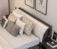 Приобреталась не только кровать, но и угловой шкаф, туалетный столик, тумбы. Мебель отличного качества, смотрится стильно. Очень удобный ящик для белья в изголовье кровати.