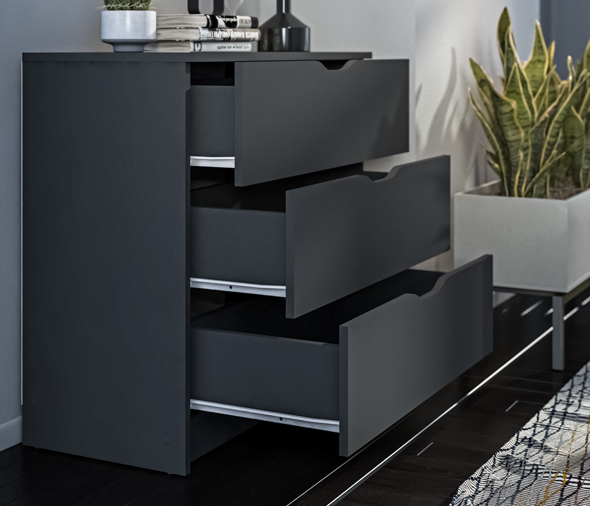 Комод для вещей из коллекции "Бруклин" имеет лаконичный дизайн и компактные размеры, 75х78х39 см. Комод выполнен из практичного материала, ЛДСП, поэтому подойдет даже для ванной комнаты. Белый комод прекрасно впишется в светлое и даже темное помещение, цвет универсален и поддержит любой интерьер. Расположите Бруклин СБ-3249 в гостиную - наполните книгами или важными документами, поставьте в спальню - там он послужит для хранения одежды, передвиньте в детскую - используйте для игрушек. Данный комод с ящиками настолько универсален, что найдет применение в любой квартире или помещении. Мебель укомплектована качественной фурнитурой: ящики легко выдвигаются и задвигаются обратно. Три просторных ящика вместительные и удобные. Отсутствие ручек - дизайнерское решение, пользоваться мебелью удобно, нет выступающих частей, внешний вид лаконичный и стильный.