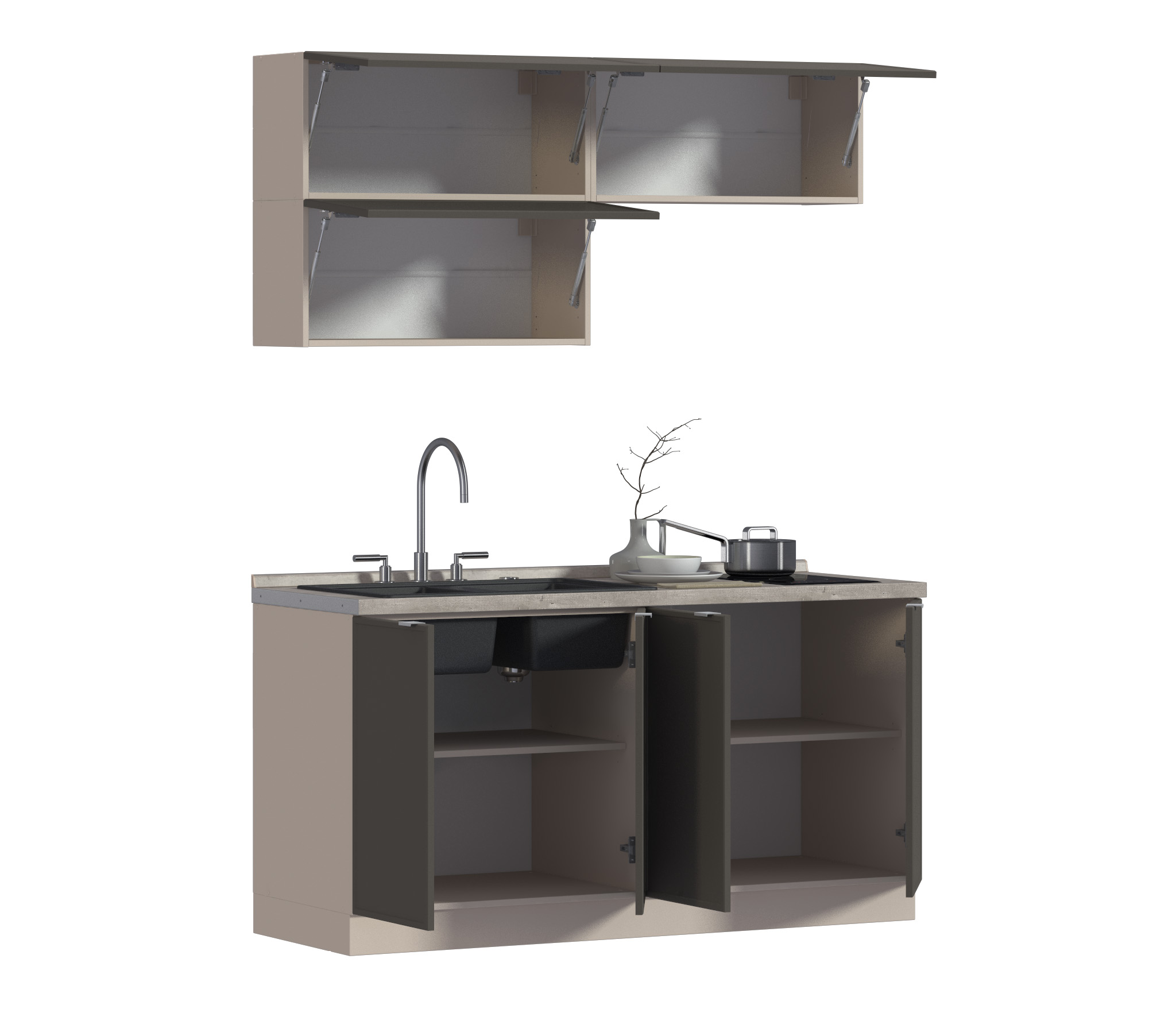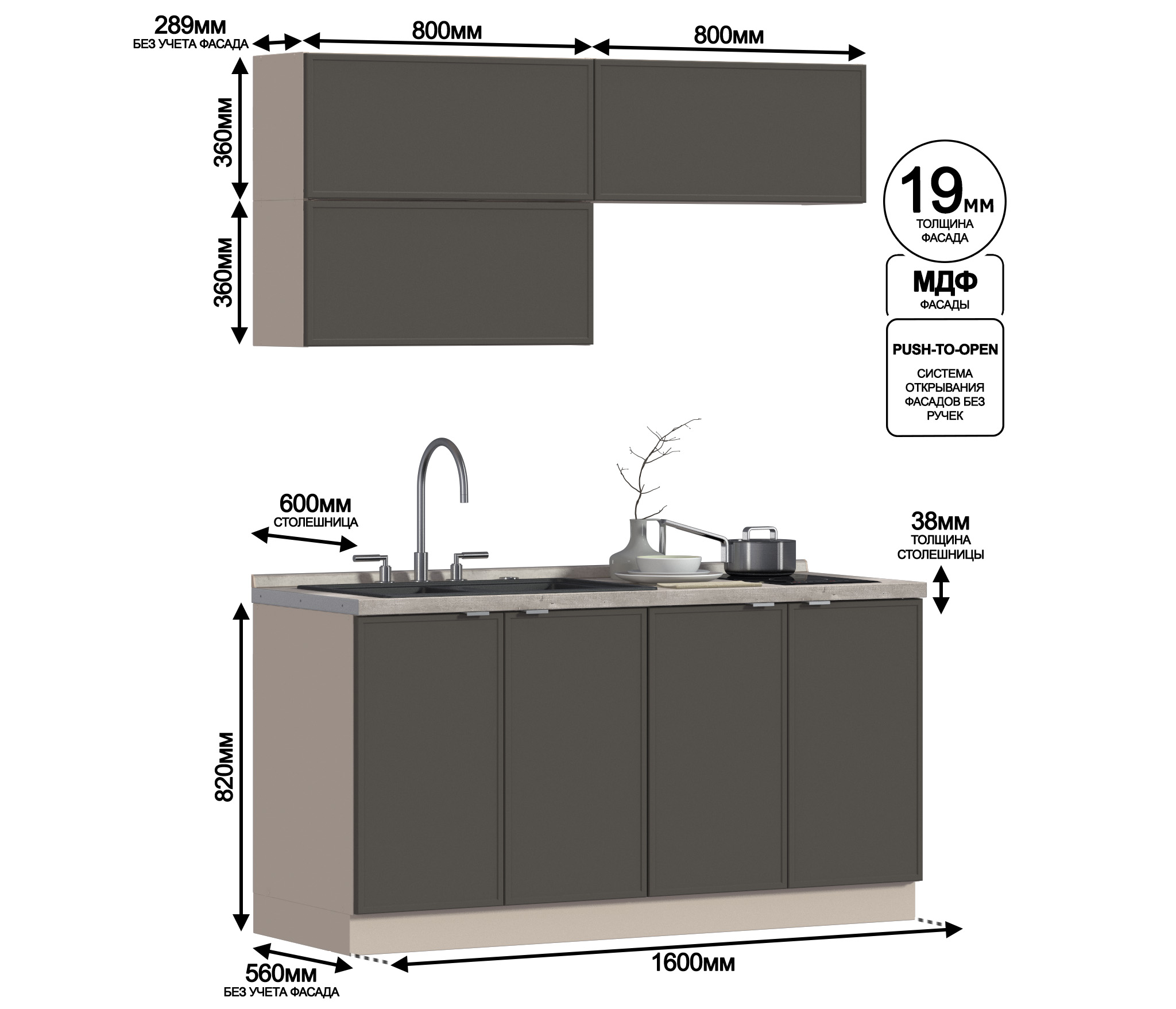 Кухонный гарнитур Регина Квадро Песочный / Базальт 1,6 м (Базальт)