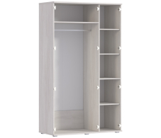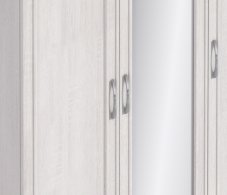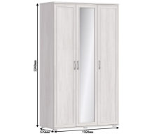 Размеры шкафа СБ-2390 нельзя назвать компактными – ширина 132 см, высота 224 см и глубина 57 см. За одной зеркальной и одной глухой дверцей располагается вместительное отделение со штангой для одежды и верхней полкой. За второй глухой дверцей - отделение с пятью полками.Произведен шкаф из современных материалов - КДСП и МДФ.Классическое исполнение, светлый оттенок оформления «Дуб Сонома белый», подобранная фурнитура и качественные крепёжные механизмы говорят о достойном качестве трехдверного шкафа Флоренция СБ-2390.