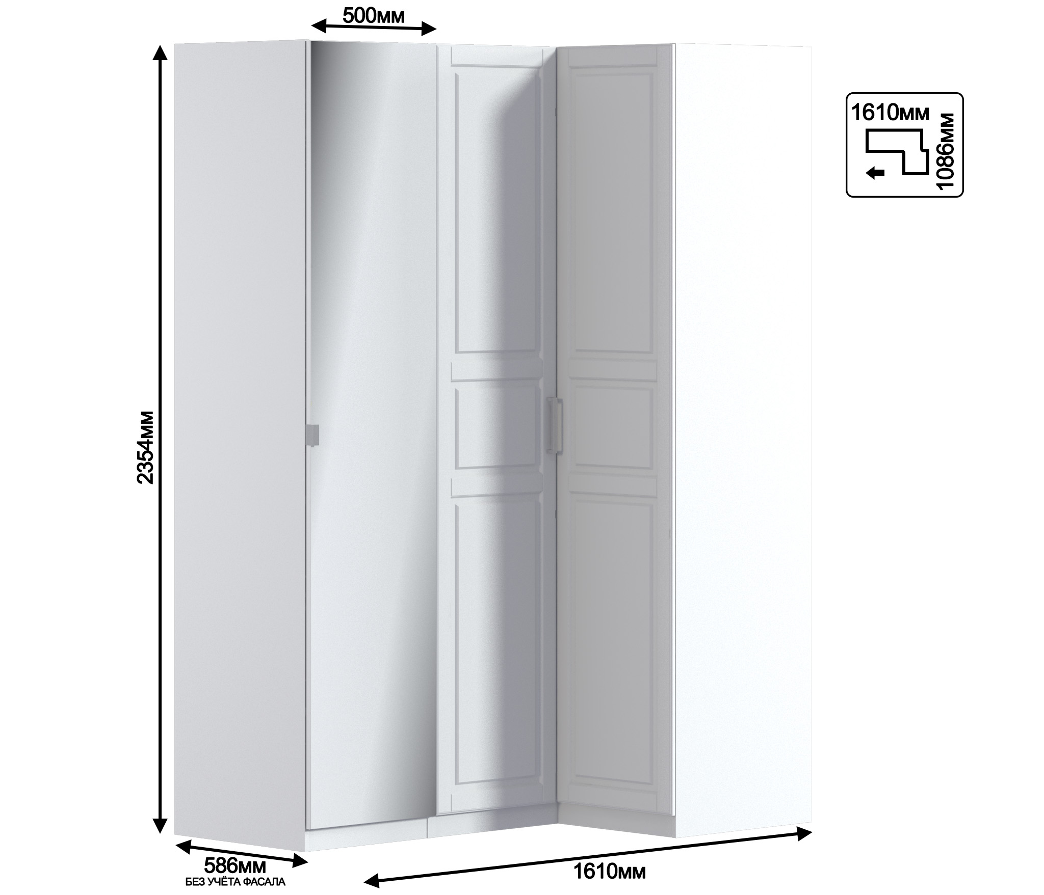 Шкаф угловой МАКС с зеркалом Белый/МДФ Белый матовый (Белый матовый)