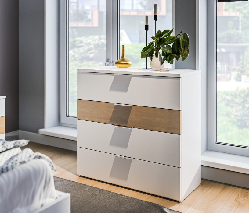 Комод простой, но очень красивый, один из 4 ящиков в цвете дуб, остальные белые. На сайте Столплит быстро связываются и привозят своевременно.