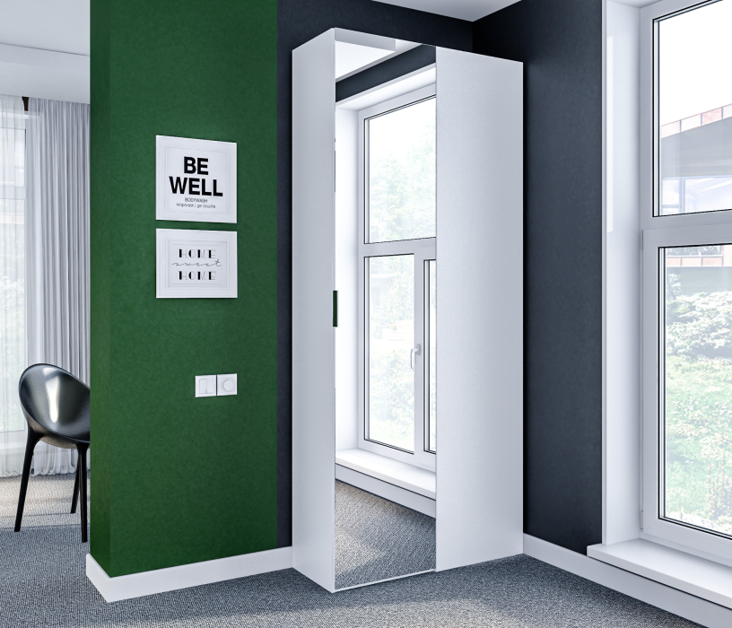 Мальта СБ-3258 Шкаф приставной Белый с зеркальным фасадом (Белый)