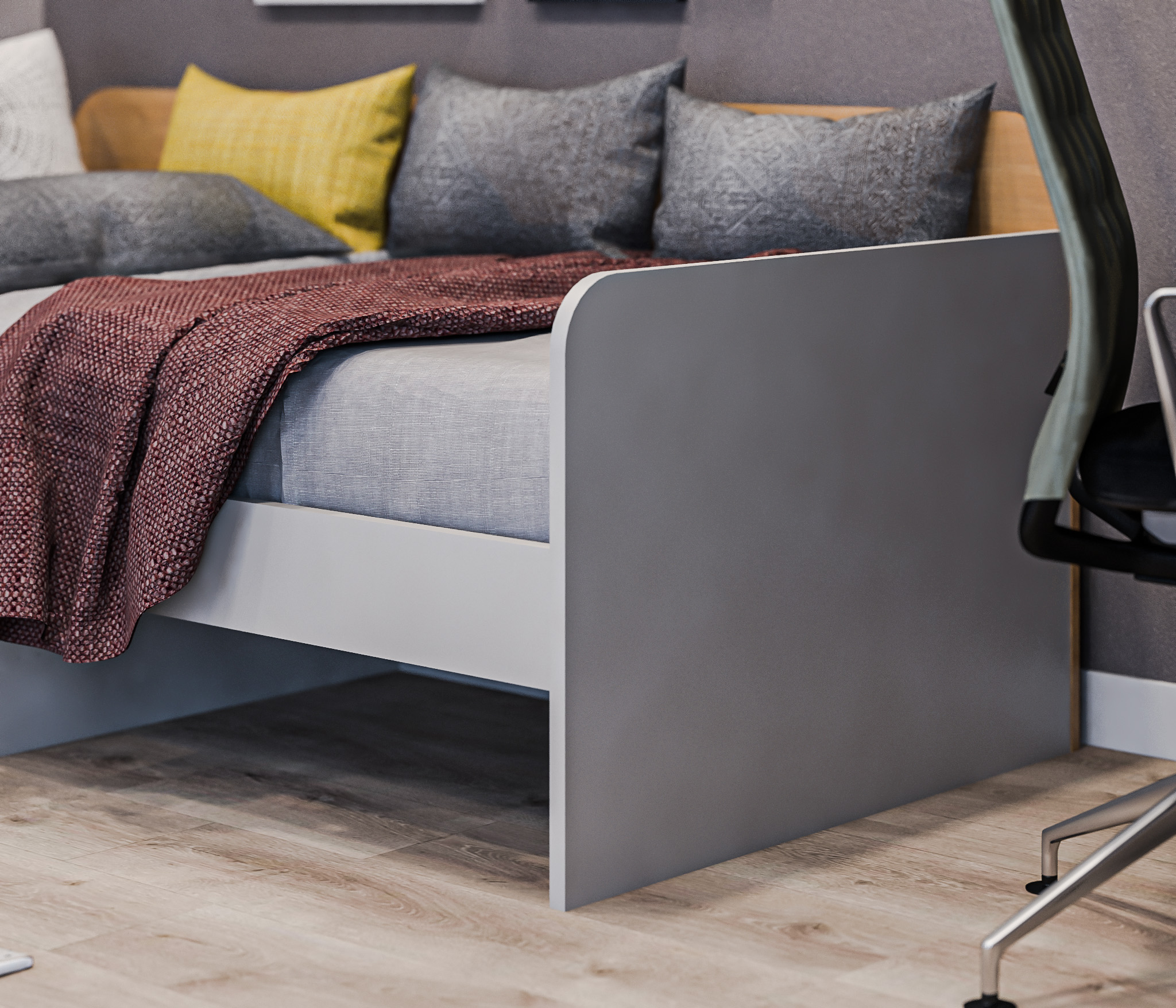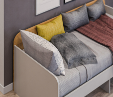 Брали данную модель кровати в спальню ребенку. В живую цвет смотрится еще красивее, чем на фото, не маркий и практичный. Кровать также порадовала своим качеством. Очень удобно что можно заказать услуги сборщика, мастер своего дела собрал все быстро и аккуратно.