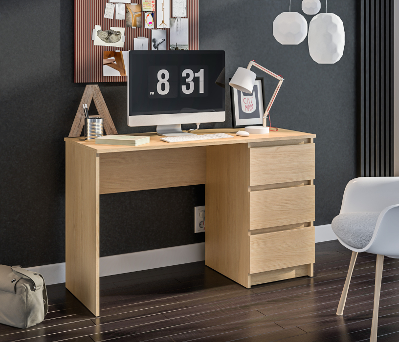 Стол Леон СБ-3336 – продуманное и комфортное рабочее место. Он может занять достойное место в кабинете, комнате школьника или студента, а также в офисе. Габариты стола Леон – ширина 119, высота 75 и глубина 50 см. Под рабочей поверхностью расположена тумба с ящиками для хранения разных мелочей.БикЮМинималистичный декор, отсутствие ручек и нейтральный цвет стола позволят разместить его в любой интерьер. Также вы можете дополнить письменный стол Леон комодами одноименной коллекции. Выполнен комод из высококачественного КДСП.