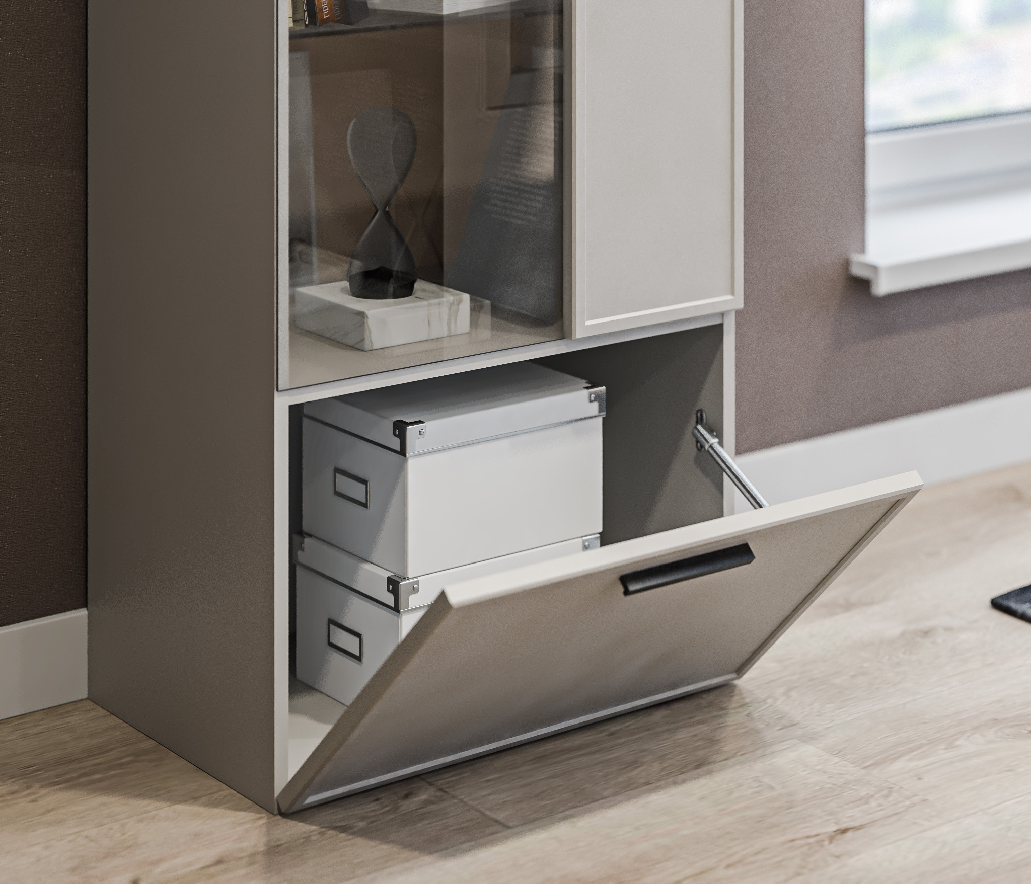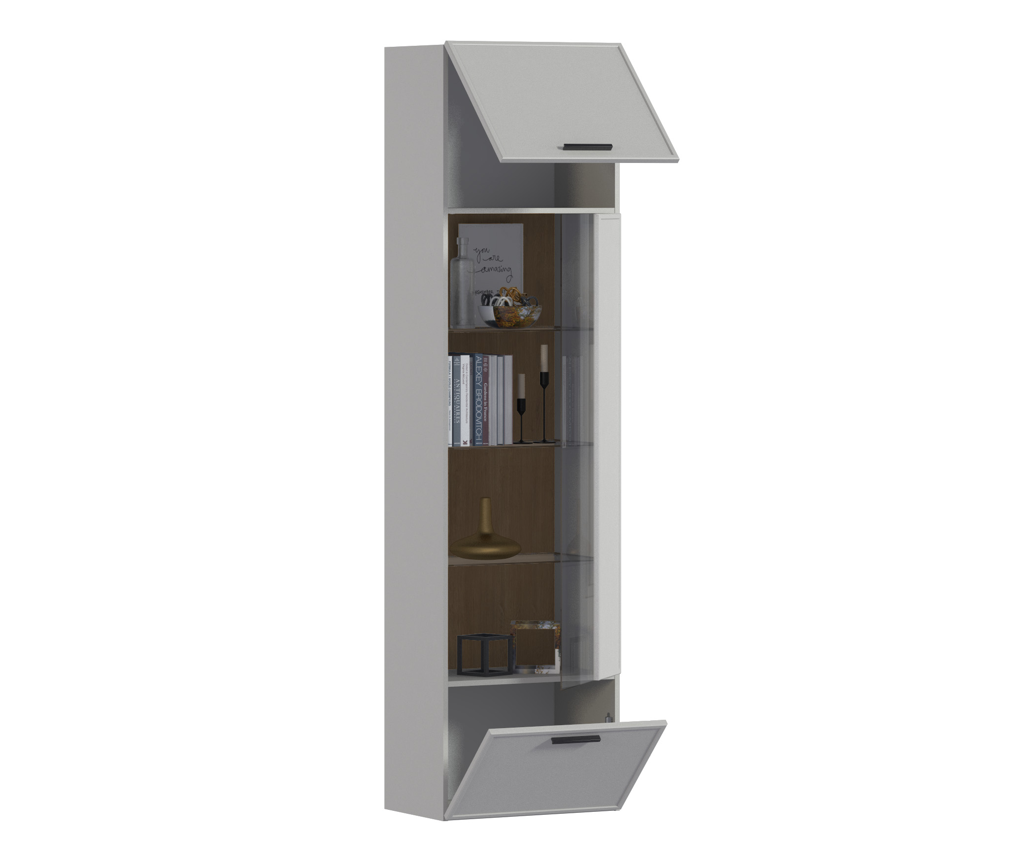 Шкаф-витрина Милан СБ-3256 Серый/МДФ Светло серый (Серый/Светло серый)