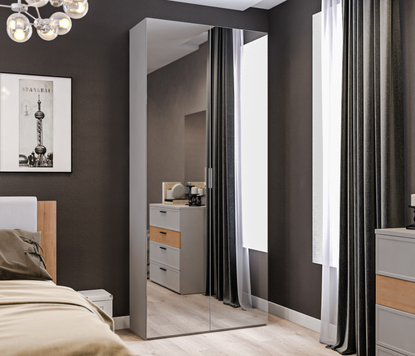 Отзывы о Столплит Шкаф 2 дверный Милан СБ-3257 Серый с зеркальным фасадом