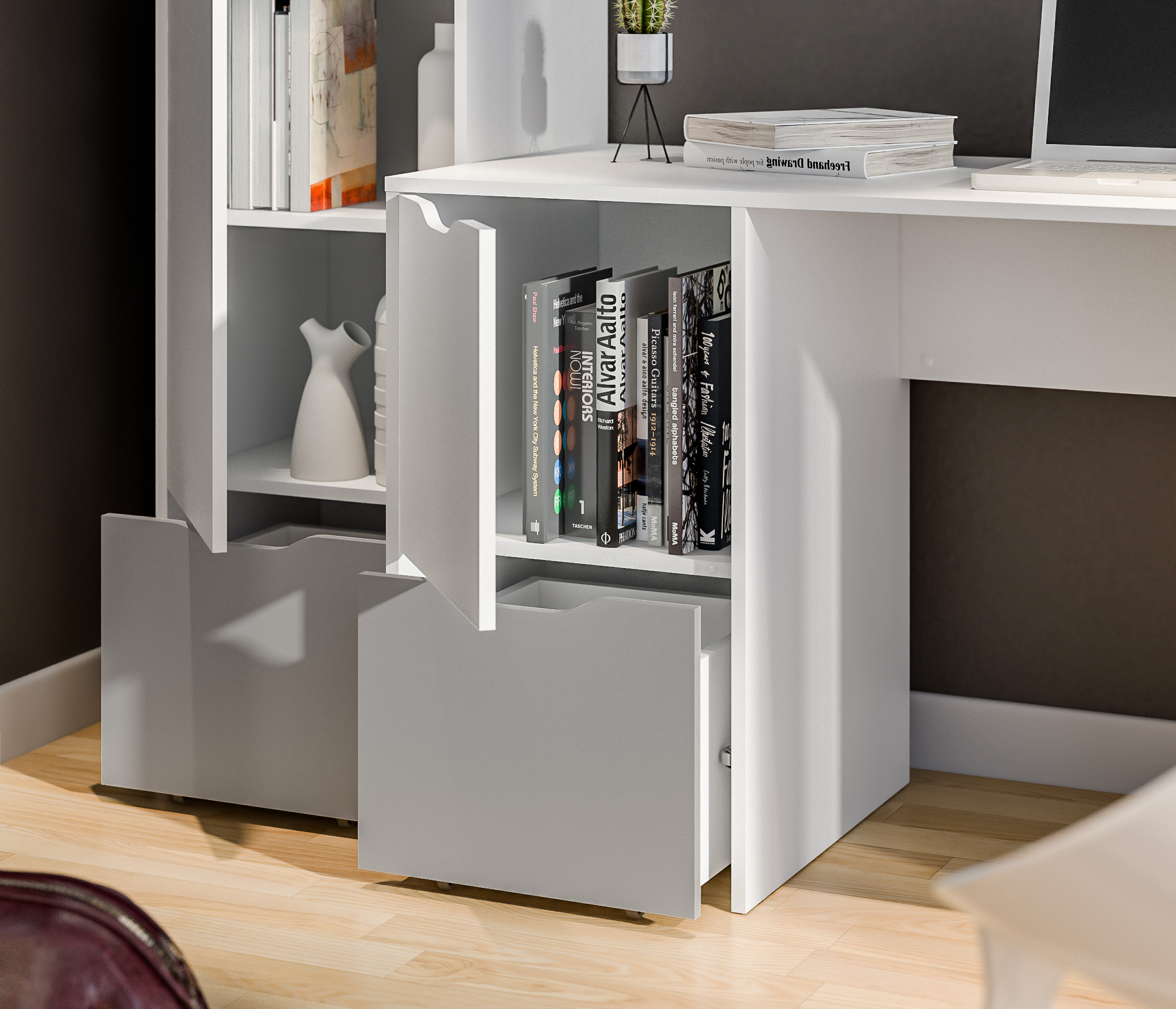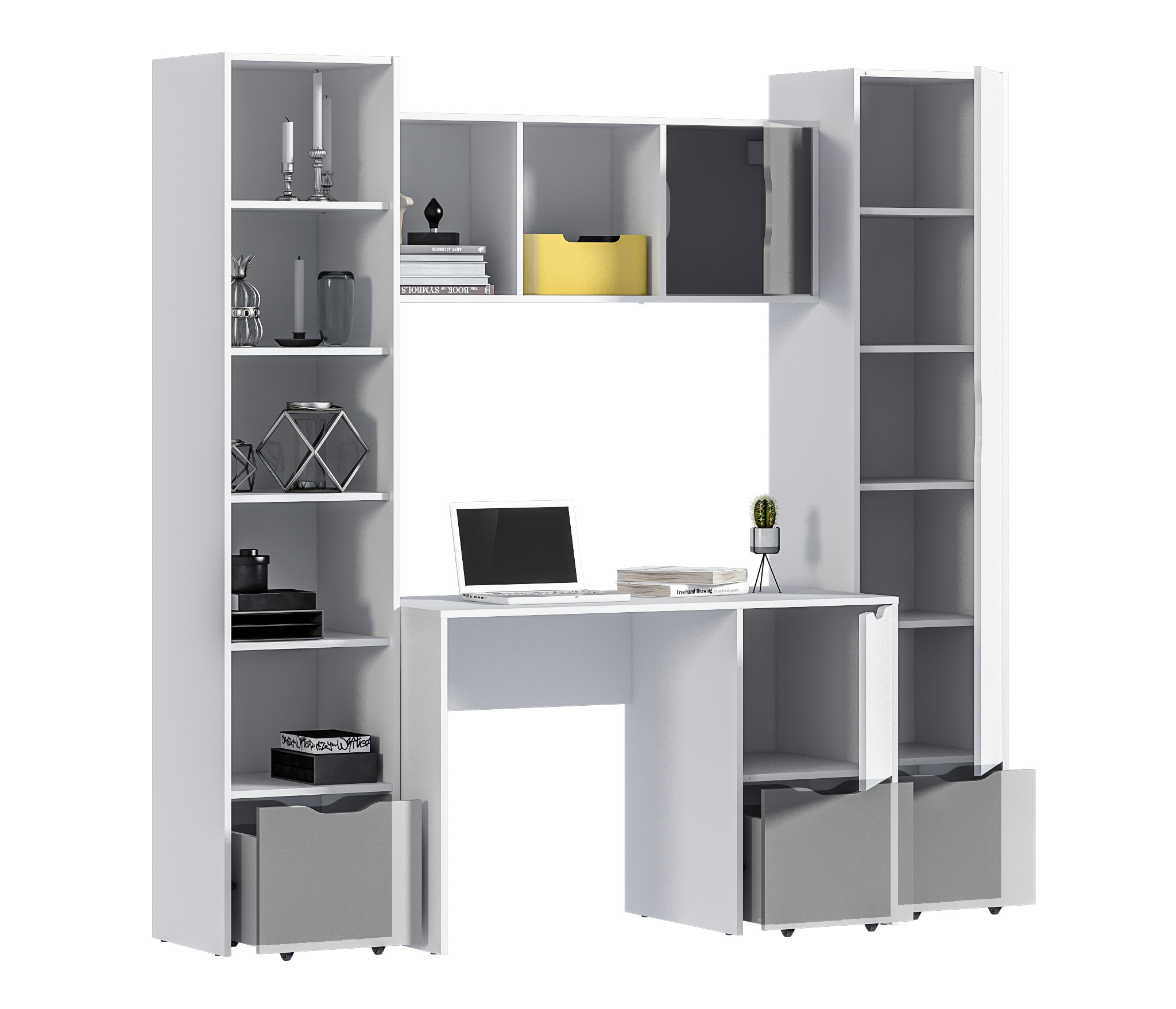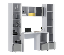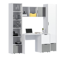 Mika / Мика домашний кабинет Белый/Серый (пенал, стеллаж, стол, полка) Код 00000298343