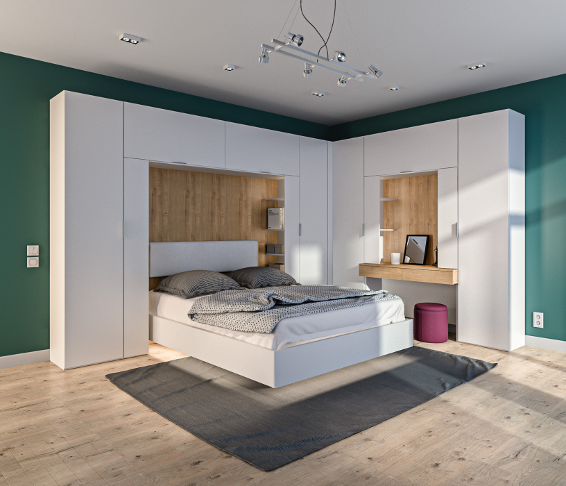 Мальта Спальня с кроватью с подъемным механизмом и туалетным столиком (Белый,Дуб Гамильтон)