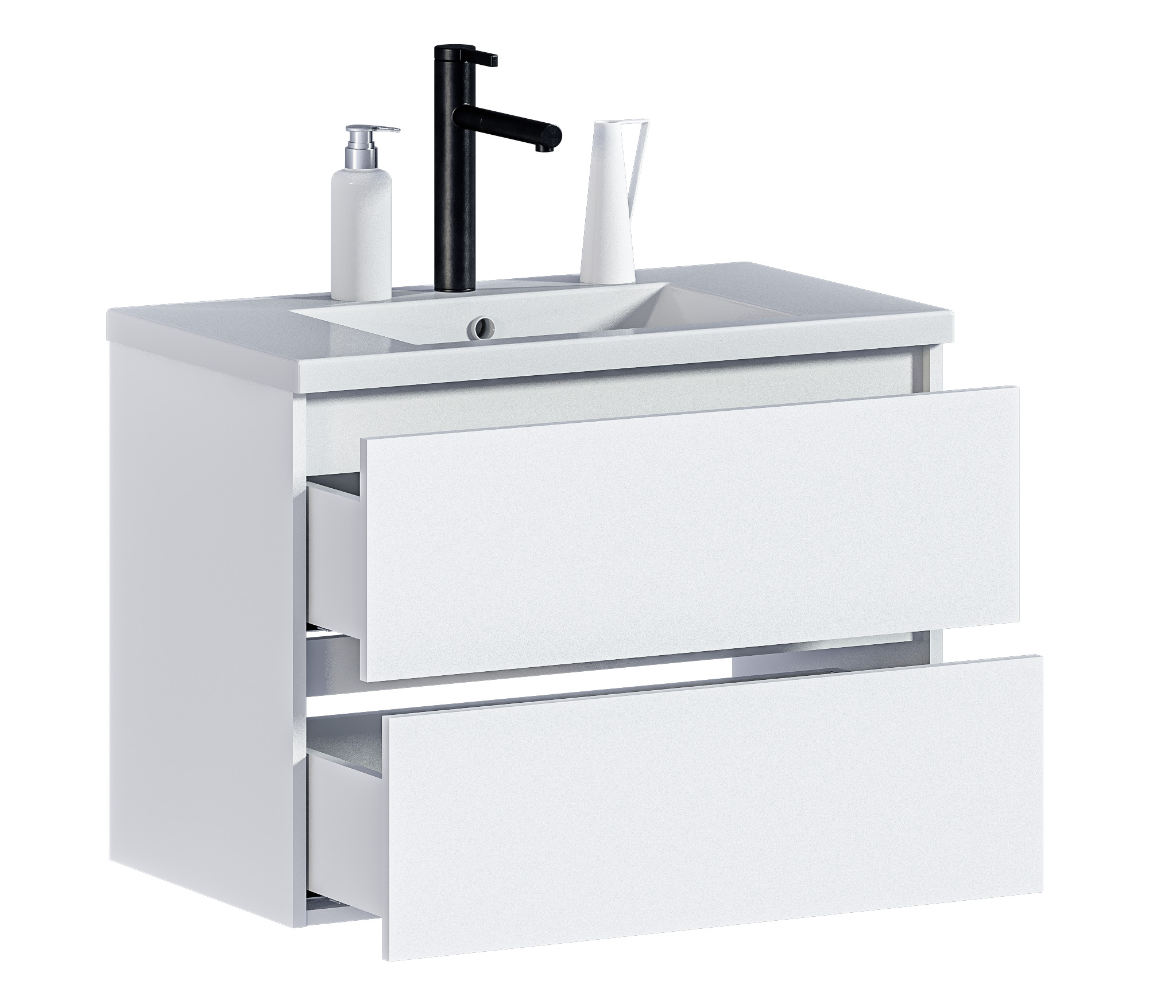 Навесная тумба Люкс СБ-3157 – продуманное решение вопроса, связанного с хранением в ванной комнате. Тумба является элементом модульной коллекции Люкс, разработанной для современных ванных комнат. Тумба предназначена для установки под раковину, но при желании можно приобрести столешницу. Габаритные размеры – ширина 80 см, высота 57 см, глубина 45 см. Тумба крепится к стене и оснащена двумя вместительными ящиками, каждый из которых может выдержать до 7 кг нагрузки. Корпус выполнен из прочного и современного ЛДСП с отделкой белого цвета. В комплект входят крепёжные детали.