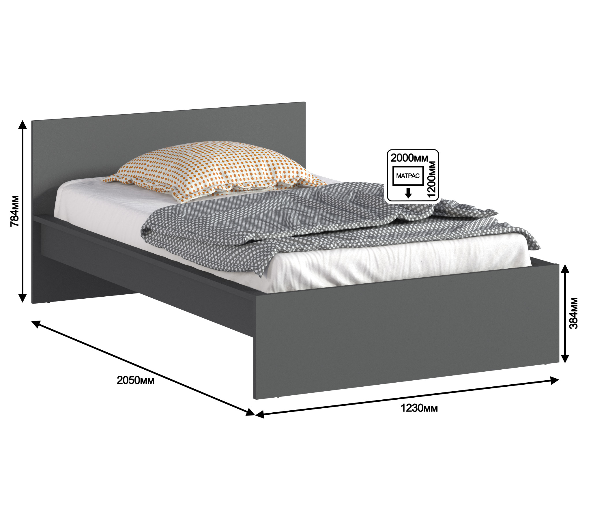 Кровать (1200) Леон/Бруклин СБ-3367 (Диамант серый)