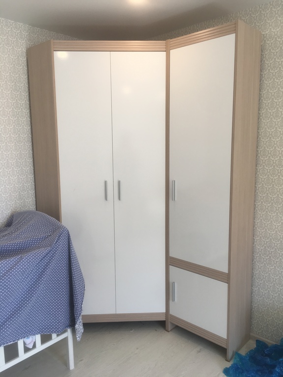 Брала в пару к угловому шкафу, чтобы "осветлить" темный угол в комнате - идеально все вписалось. Никаких нареканий - сборка быстрая, все в комплекте. Но на всякий случай купила дополнительную стяжку, чтобы прикрепить к шкафу, а не к стене для устойчивости.