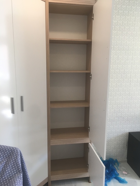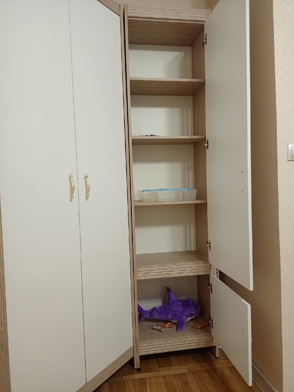 Пенал брала в пару к угловому шкафу. Понравился, только ручки заменила. Правда в процессе появилась задумка, добавлю в ещё нём опцию в виде выдвижной штанги вверху, с возможностью, при необходимости, снять полки и повесить длинные вещи.