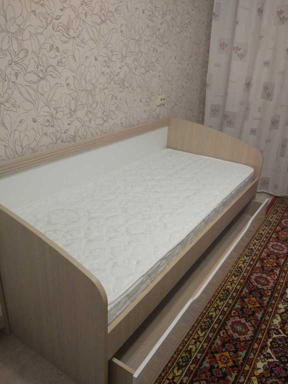 Мы дочке брали такую кровать. Очень удобная, спальное место отличное, и выкатной ящик удобен, можно под вещи, можно для спального места
