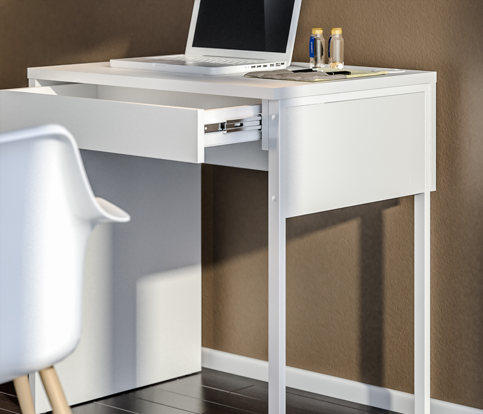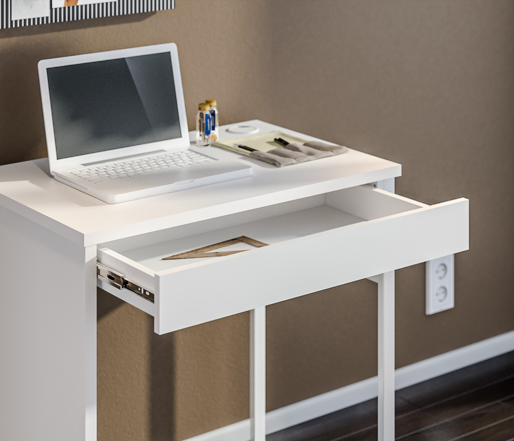 Отличный стол, очень современный. Компактный, есть ящичек для мелочей. Также можно спрятать удобно провода в нем. Довольны покупкой, рекомендуем