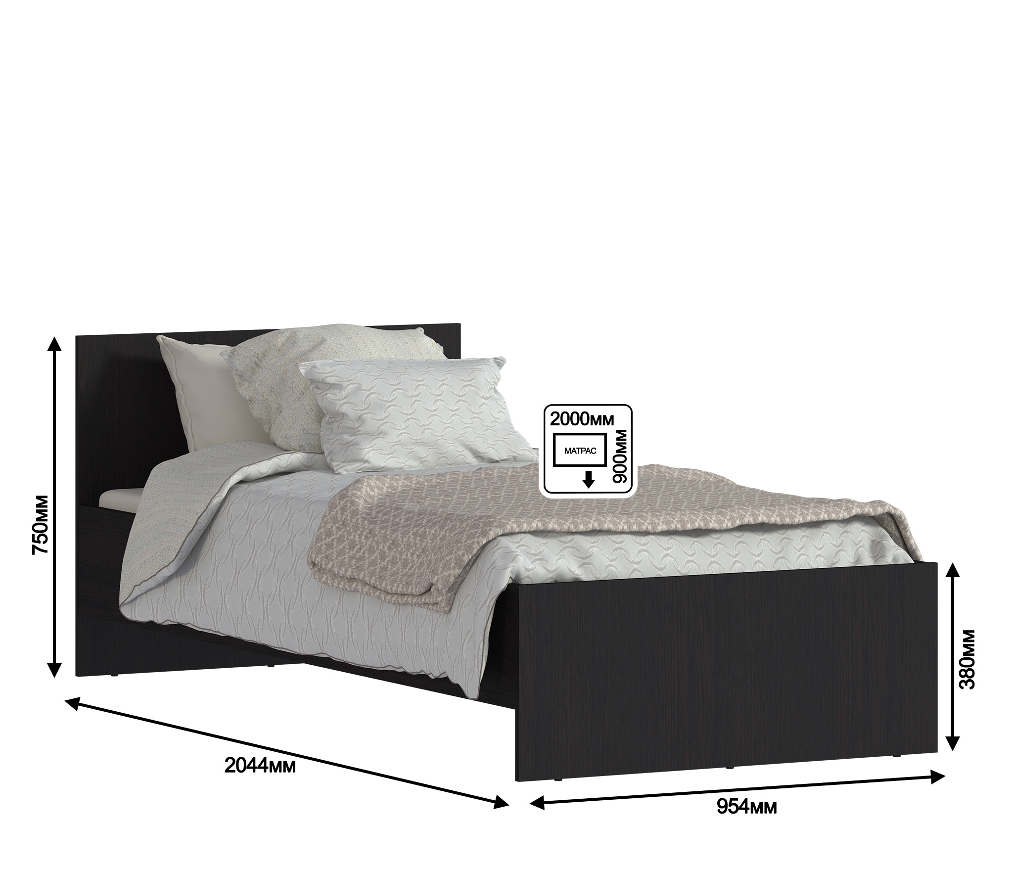 Терра СБ-2527 Кровать (900) Венге с основанием (Венге)