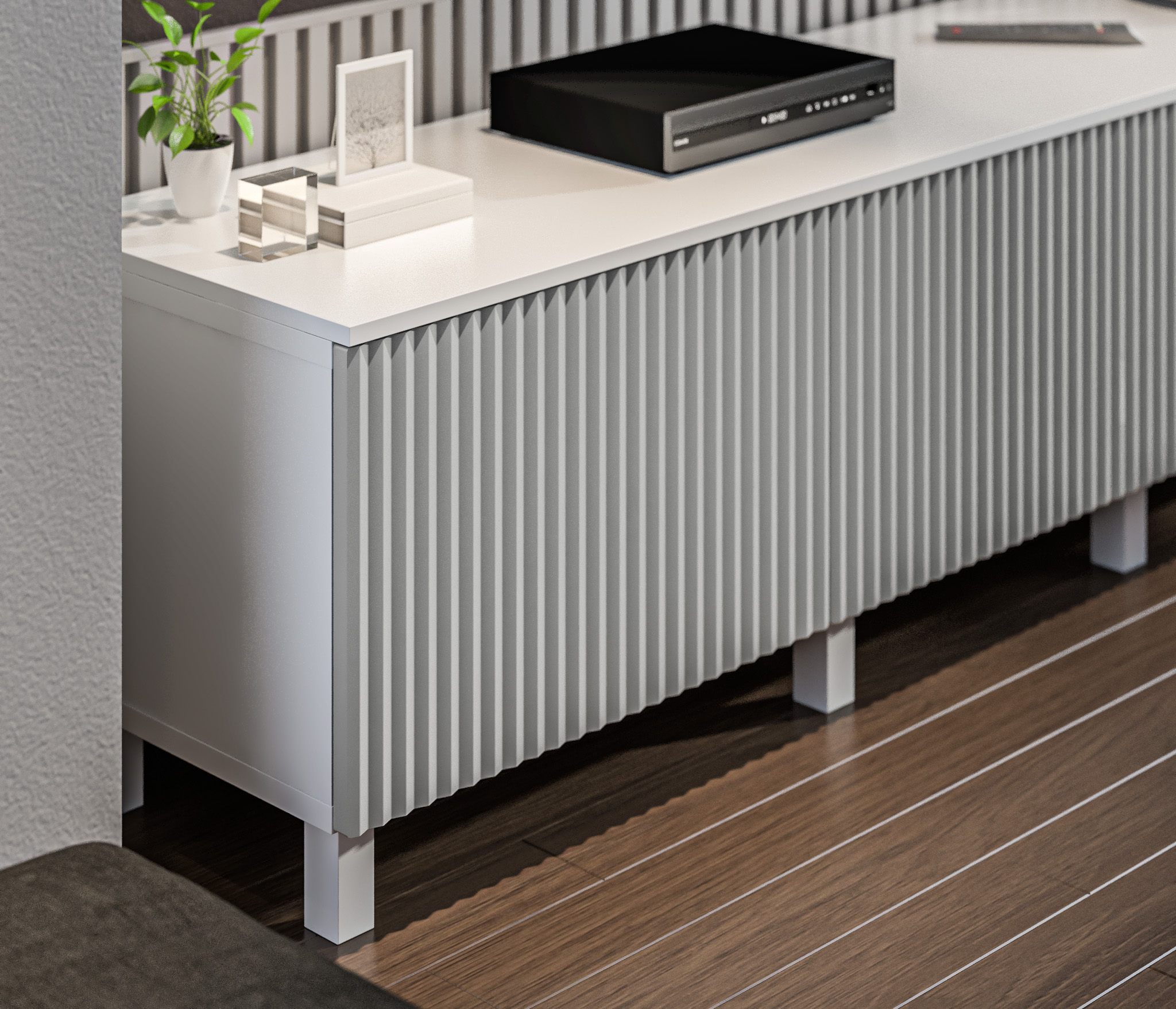 Гостиная (стенка) на ножках Тренд Белый / МДФ Джаз Светло-серый (Белый/Серый)