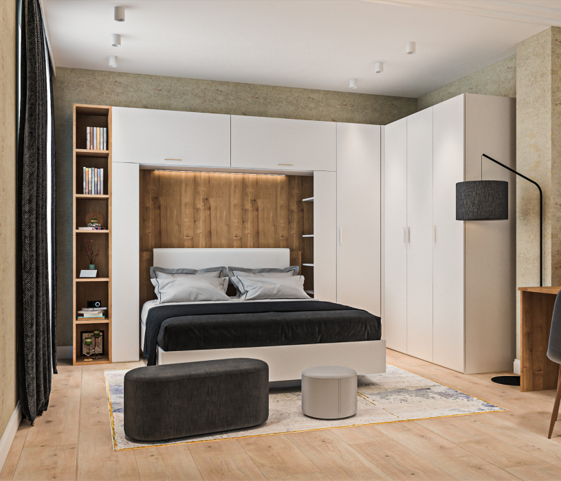 Корпус спальни изготовлен из высококачественного ЛДСП, что обеспечивает надежность и долгий срок службы.