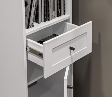 Продуманные детали делают использование стеллажа максимально удобным: шариковые направляющие обеспечивают плавное выдвижение ящика.