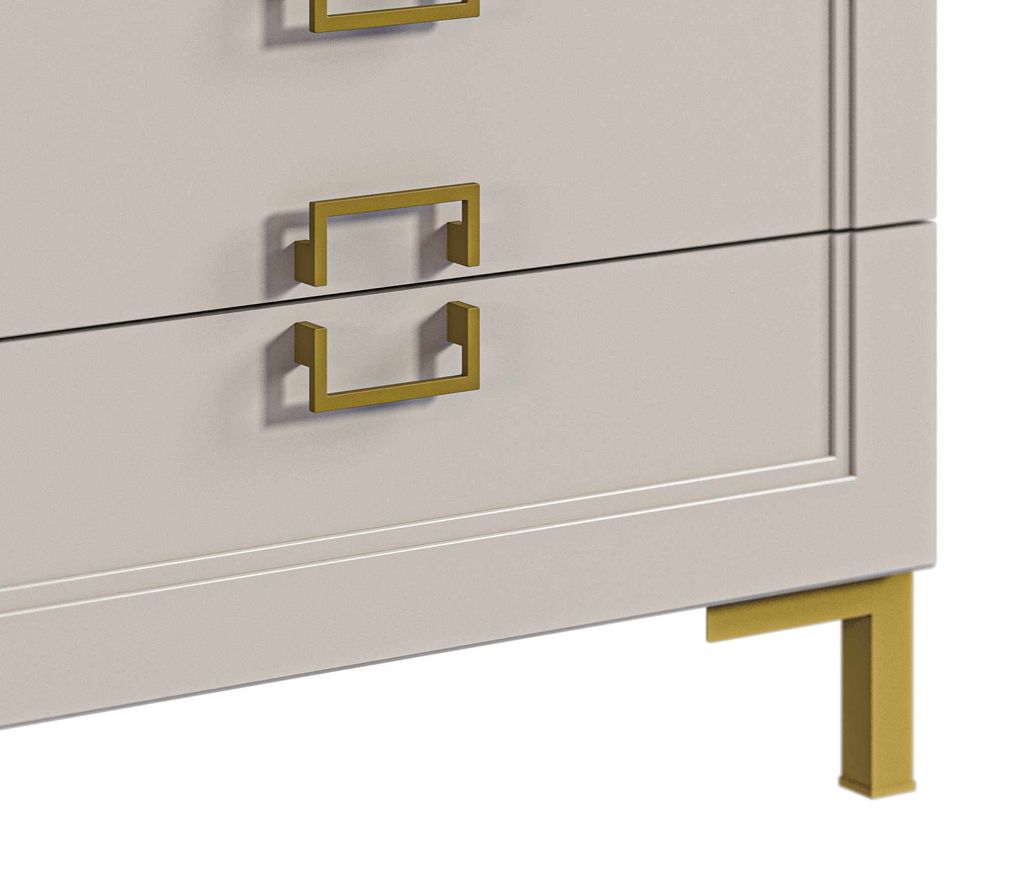 Золотистые ручки и ножки коллекции "Ассоль" добавляют неповторимый шик и изысканность, завершая образ тонким и стильным блеском. Эти акценты создают атмосферу роскоши и утонченности. Они играют роль визуального украшения, дополняя общий вид мебели и придавая ей особый шарм и элегантность.