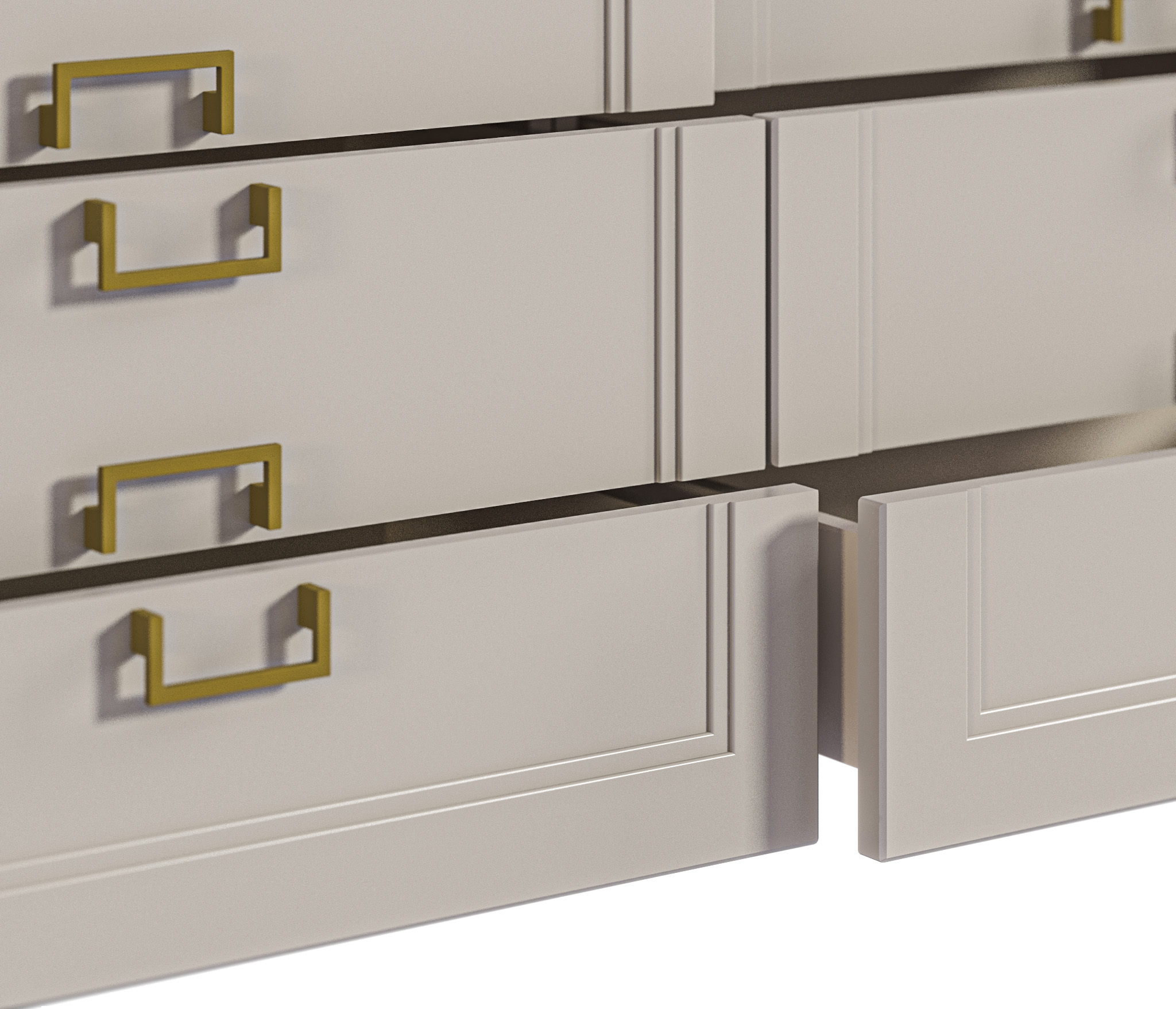Мебель коллекции ассоль "Ассоль" имеет петли и направляющие с доводчиком, что придает легкость и плавность движения при открывании и закрывании, а также повышает уровень комфорта использования.