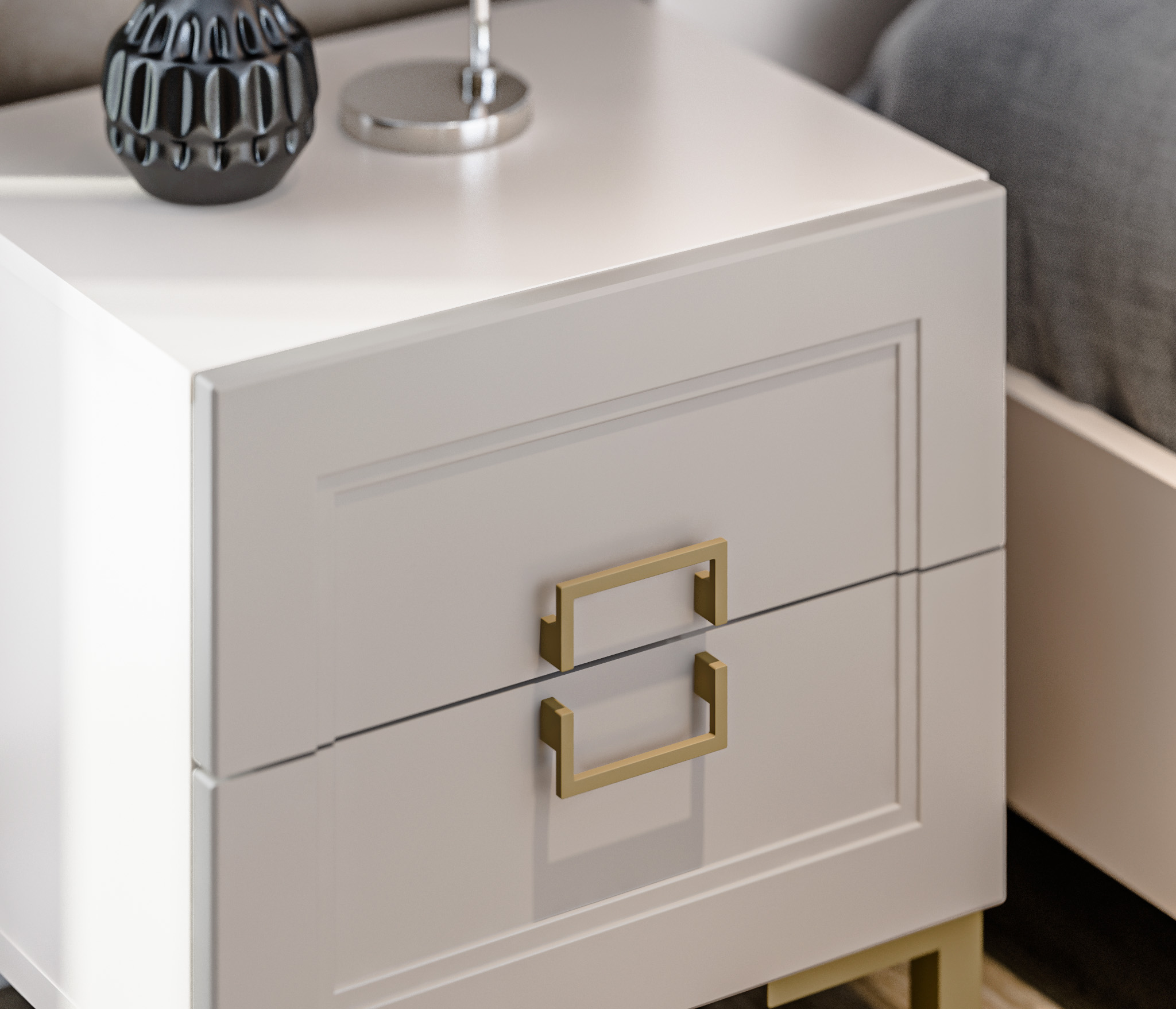 Золотистые ручки и ножки коллекции "Ассоль" добавляют неповторимый шик и изысканность, завершая образ тонким и стильным блеском. Эти акценты создают атмосферу роскоши и утонченности. Они играют роль визуального украшения, дополняя общий вид мебели и придавая ей особый шарм и элегантность.